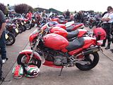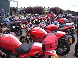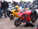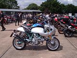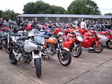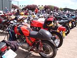 We raised £400 for Emma's Charity, the Papworth Hospital Cystic Fibrosis Unit, and although we didn't get an exact count on the number of bikes the total easily exceeded 200. The number of Buells was somewhere between 40 and 45, and Italian bikes probably numbered around 120. Invited as special guests, there were also 17 Vincents from the VOC.