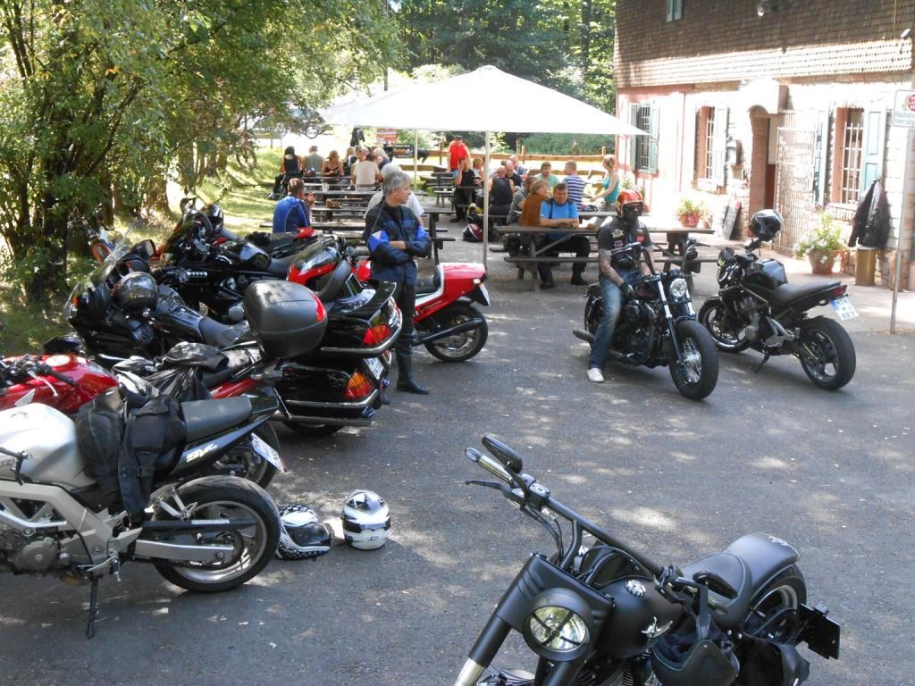Sascia came to the evening tea party at ours with her YB11, parents Klaus and Irmi on a more pillion suitable VFR, but on Sunday Klaus got his DB7 out to join us for a spin over to the Spessart nature park