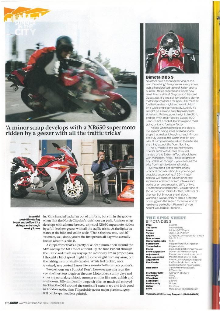 | I bought a back issue of that 2007 Bike mag a few weeks ago - not a good article so wouldn't bother if you haven't ordered it yet (I'm back at work next Thursday so will scan and upload it for what it's worth) |