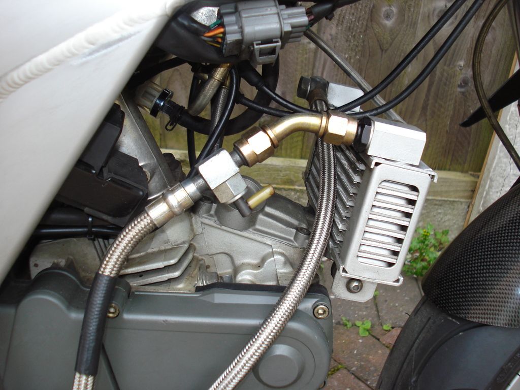 Tricky one that Paolo....not sure that anyone on here has a half fairing DB4.....they are farely rare as are DB4's in themselves as Bimota went bump when this bike was new and not all of them were completed.....below are pictures of my full faired DB4 tri-color...and the front nose fixing point is right where the Oil cooler radiator sits on the one-off valve cover with the brackets built in to hold the oil cooler...so I imagine that a flat plate bracket is fitted inbetween them with a hole for a rubber wellnut or captive nut to take the bolt on the nose cone in that location....wouldnt be too difficult to fabricate one...