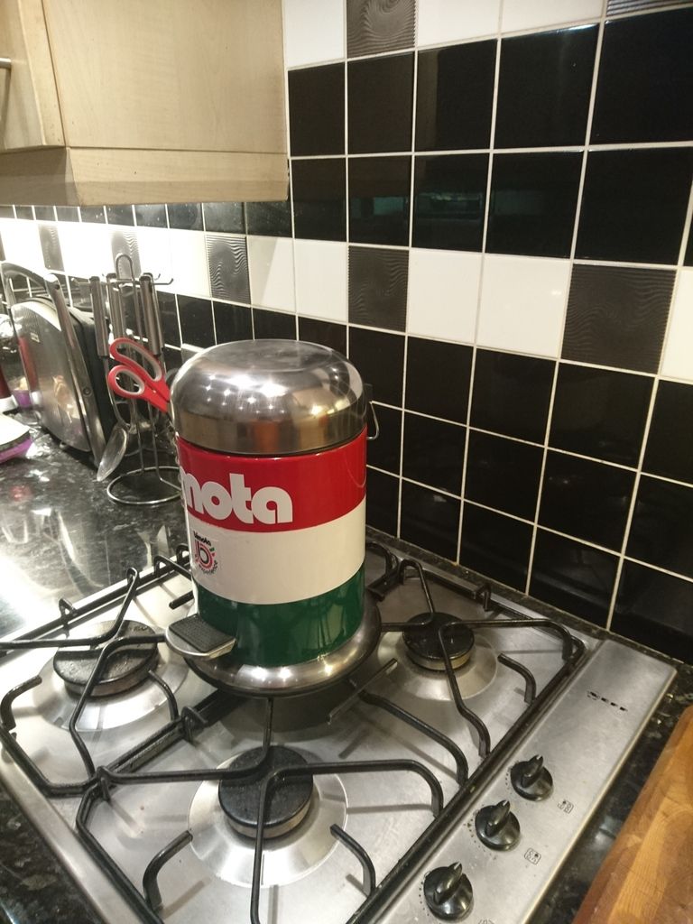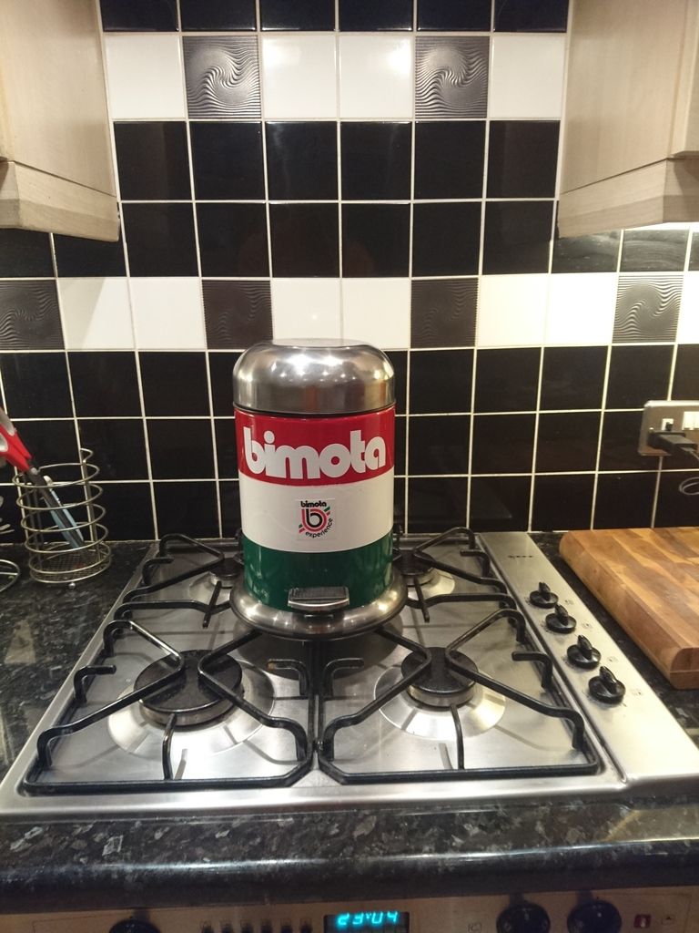 Please note the "turned" silver "b" logo atop the SS polished lid...Only Bimota would do such a thing eh? Perhaps they should revive these products and introduce a Home and Gardens Line of items? Bird Tables, Speaker stands, Clothes hanger...etc etc...