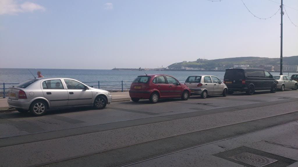 And arrival at chosen destination and deliverer of bed, beer and food...on the sea front in Douglas...a mere half a mile from the ferry port....no undergound car-park or garage...merely street parking only...complete with exposure to vagueries of british weather...Oh Err...Italian electrics and possible rain....