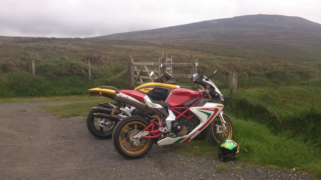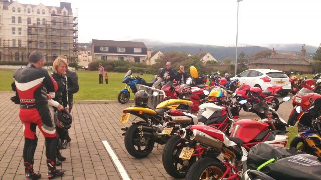 Well...a few of the boys are back from the island....all in one piece...riders and bikes.......thats Geekay, meself and Vort....JRH, BimotaNige still over there...as is a Db10....also spotted were a KB1 being ridden around and an Sb6.........