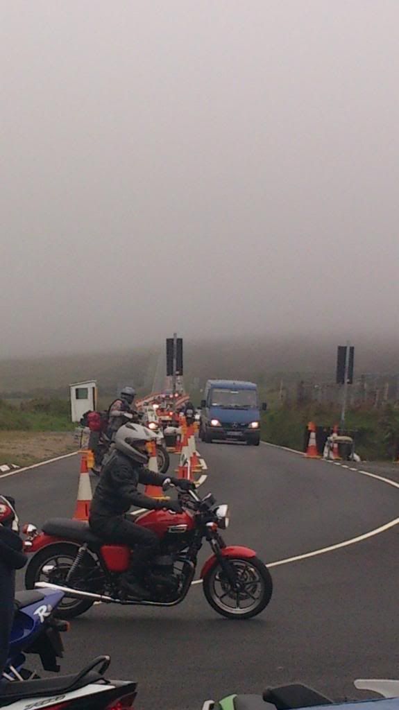 Low cloud over the mountain at Ramsey...start of the mountain stretch of the track...yes somewhere in that blanket of cotton wool there is a mountain circuit stretch of the track........the only bit thats unrestricted for speed limits for the general public....