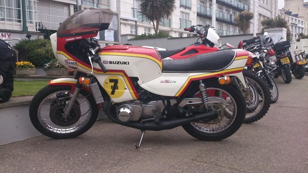 A Random picture of a Barry sheene GT750 Kettle...also suffering the vagueries of the british weather being parked outside the Hotel...
