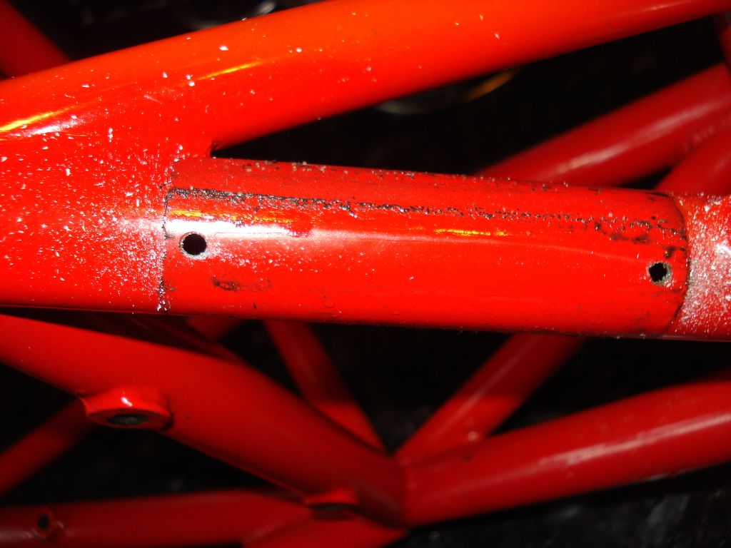 When I was removing the 3 No rubber plugs that the petrol tank sits on ...pushed into the frame....the first one I pulled out I was a little "brutal" and the plug part snapped off and stayed in the frame....I used a small pick to prise the other 2 out...fortunately the one that snapped off was the middle rail where the shock top mount bolts on...and there is a hole in that tube (the other tube for the 2 other mounts is flush welded at both ends)....Fortunately I managed to rattle it out...and superglue works wonders with rubber....