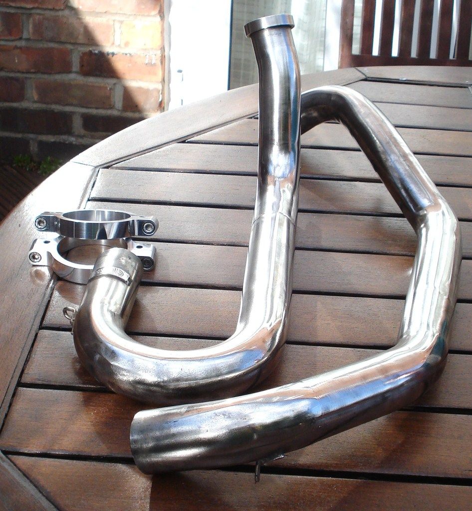 Bimota welds numbered tags onto each header so that they match with the follow on link pipes...evidently showing each one was hand made...and lengths/bends may vary otherwise....the top of the tabs indicates where the next piece pushes down to....so you dont need to polish this part as its not seen...