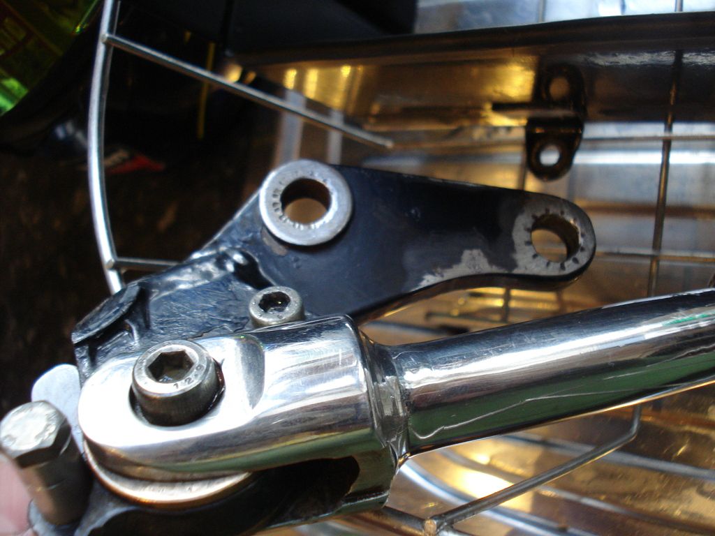 | 2bims, Just a thought on prep for powdercoating your frame.  I'd have the coaters blast it first, them take it back for inspection.  You can "fix" any minor blems with a dab of JB Weld, then sand smooth just like the plastic bondo used for regular paint prep.  The JB Weld powdercoats over just like metal and holds up well in their oven.  Perfect for fixing spots like the worn area on your swingarm.  If your concerned, ask your powdercoater, but I've been using JB Weld for years for that purpose - got that tip from my powdercoater.