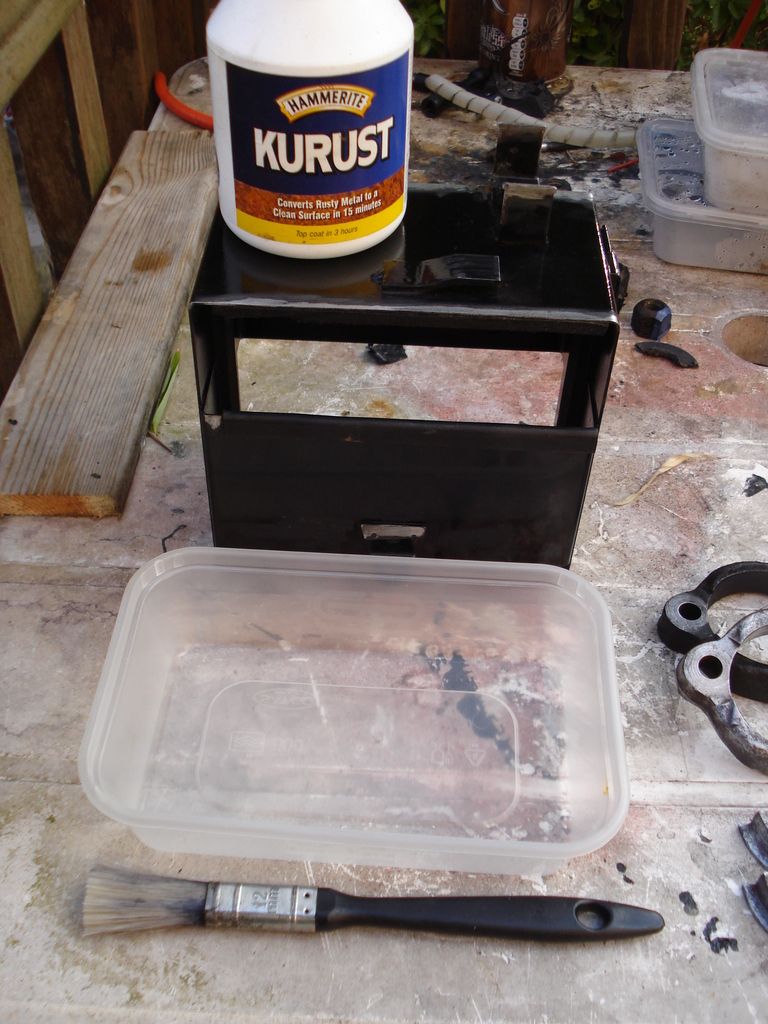 then its rust treatment time...turns rust back to metal (but grind off loose stuff first)