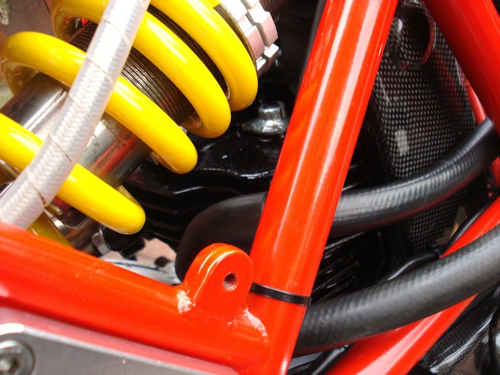 Newly powder coated Ohlins spring, colour change from red....