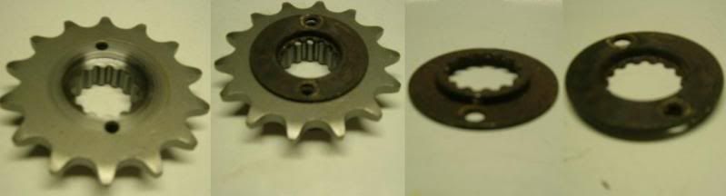 Redtop provided a schematic/drawing of the dimensions for the front sprocket and I had two machined to fit the OEM retainer. This is a picture of the machine work and the retainer that was on my '94 DB2...