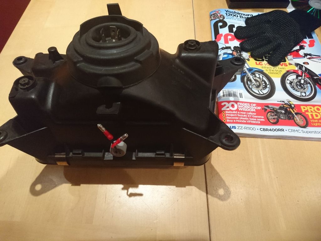 | Its a bit complicated if you were swapping to a foxeye unit with their special expensive bulbs....but going back to standard for the UK is straightforward...each of you beam unit will have 2 spade connecters.....the standard unit has 4 spade connecters....one for low beam and one for high beam so wiring and connecters would stay the same...and still work as norm off the LHS switchgear...I'll photo up my original unit back and front...the standard lamps are also shallower with the back box so no space issue there...I had to fiddle around with my speedo drive cable and cut a slot in the back of the twin beam Vdue unit to get it to fit...evidently as you have a separate sidelight unit atop the main unit that is cut out in the bodywork...you'd probably keep that but you could also pull those 2 connecters and connect onto the sidelight in the main unit....... |