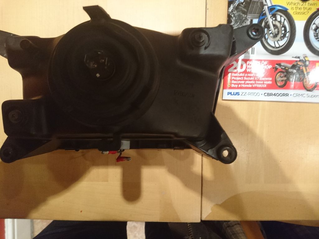 | Numbers on the front lens real difficult to read without a torch shining on it....on the back and front it says Koito, Japan, on back its stamped SAE M 90 12V 60/55W...I've taken piccies and will upload later...3 pin connecter bulb on the back...think I have photos of how mine was connected before I changed it...only pliers needed...kept same connecters.......rubber grommets in plastic casing 4 no are electrical hole rubbers from Halfords as fitted by BImota to keep vibes down maybe as Duc engine fitted to this bike and not a Yammie unot...Early FZR600 units seem to be the same...1991 ish |