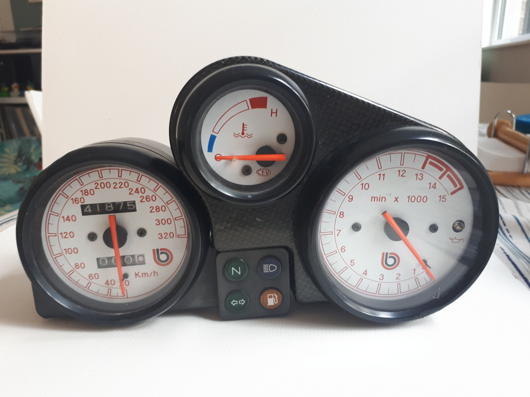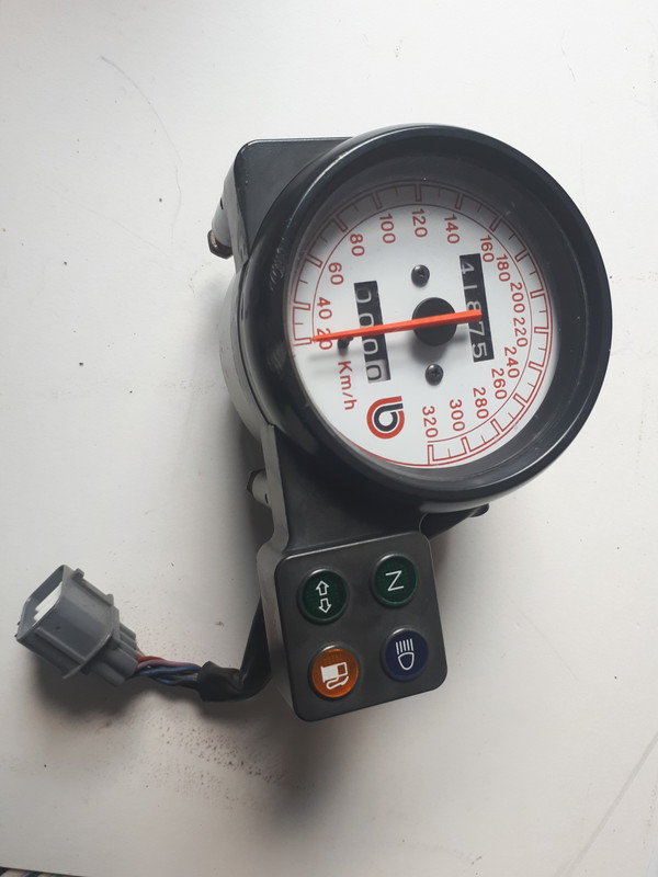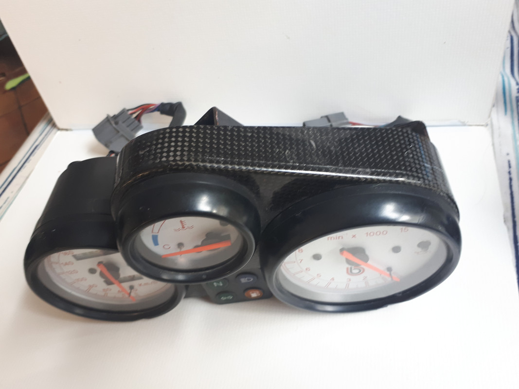I have a speedo and 4 warning lights unit and also the tach and water temp gauges which are mounted in the carbon fibre surround. ... Are you looking for all 3 gauges or just the tach and temp gauge?